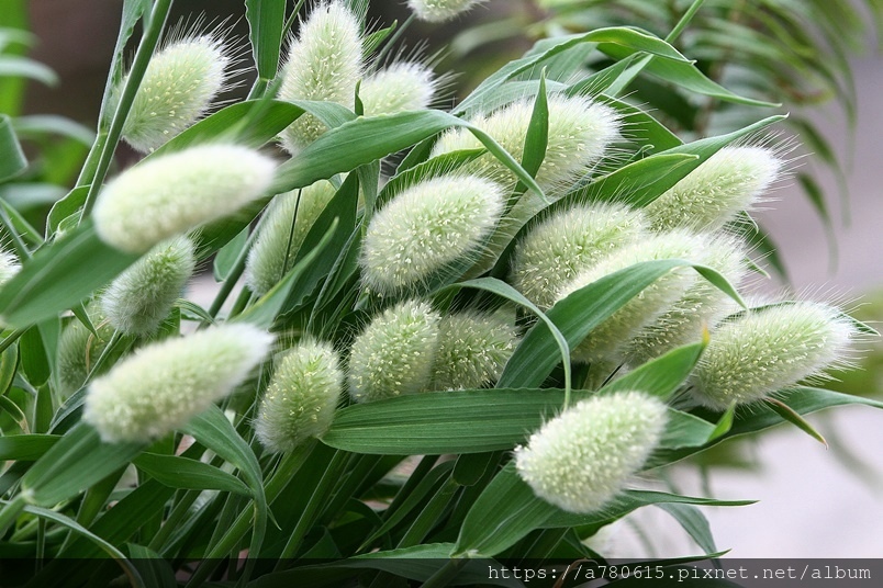 兔尾草為禾本科兔尾草屬之一年生草本植物,植株多叢生低矮,每年春季會開出白色似兔子尾巴的花穗,所以得名兔尾草