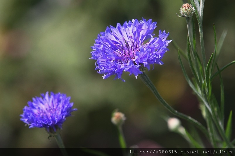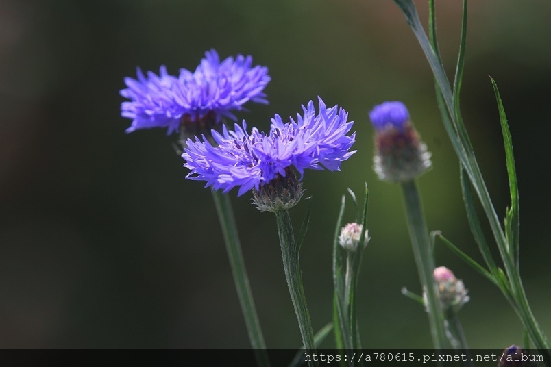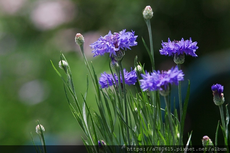 春季開花的矢車菊,有紫、藍、白、粉紅等顏色,又
