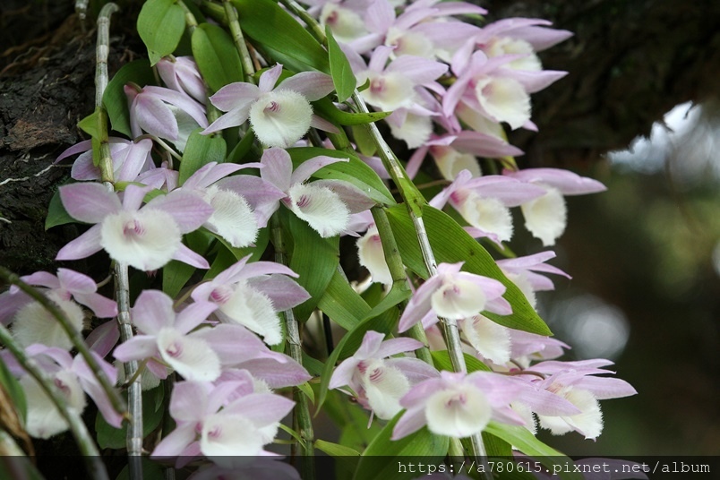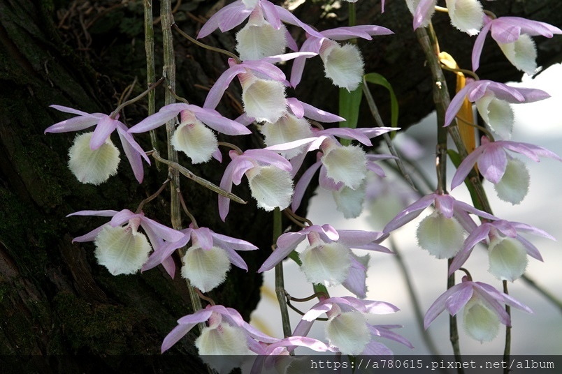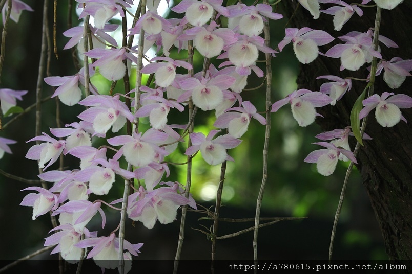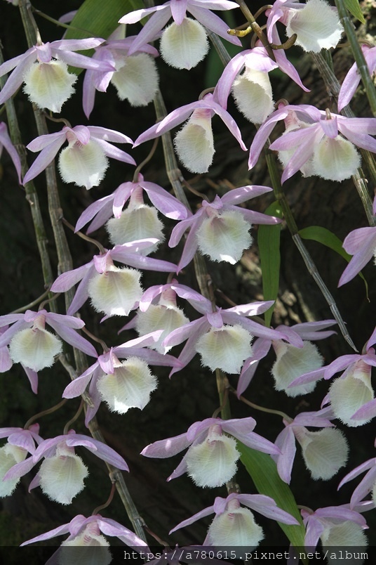 成群開花時格外壯觀,如同瀑布般垂掛於樹幹樹梢,