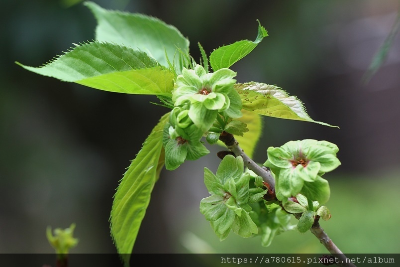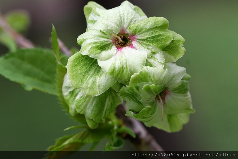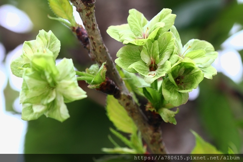 御衣黃是八重櫻的品種之一,綠色的花瓣其實是葉綠素