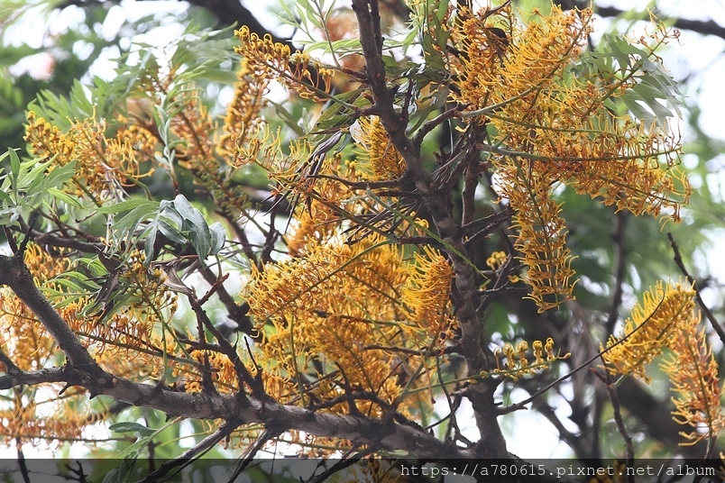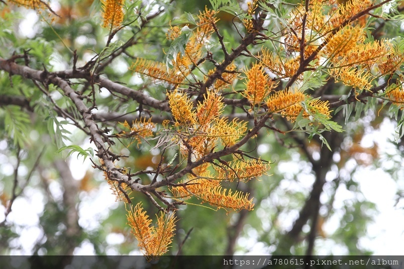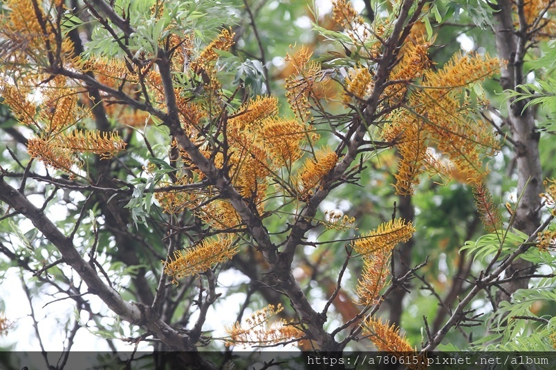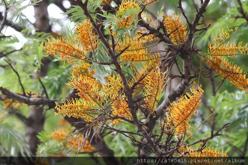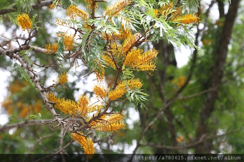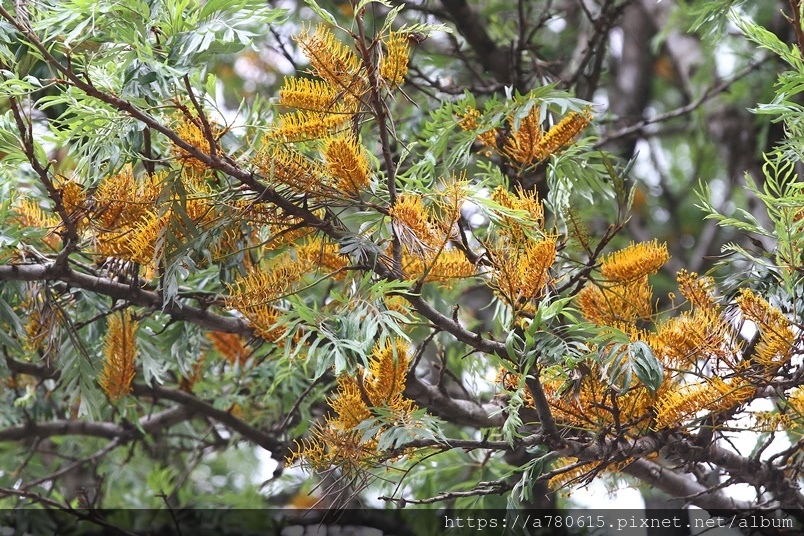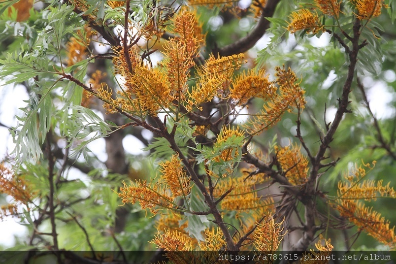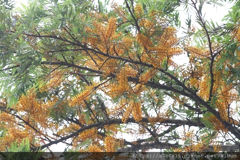 每年四、五月會在枝條端開出金黃色花序,花為雌雄同