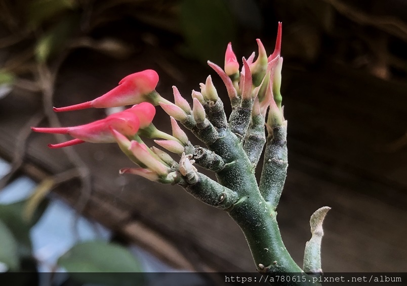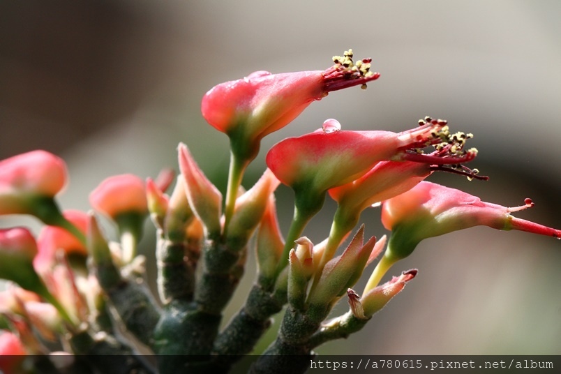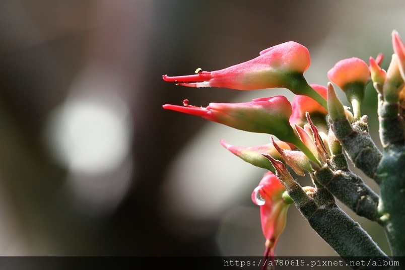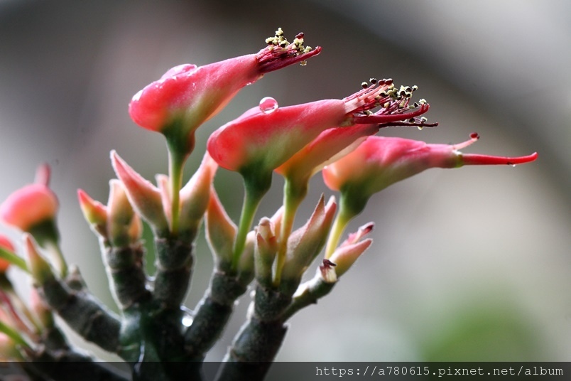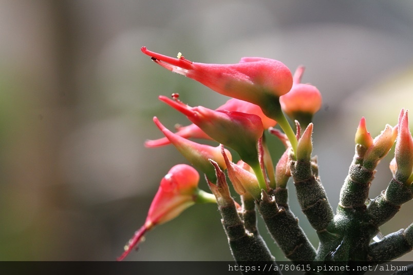 紅雀珊瑚也被稱為「銀龍」,莖肉質多汁,外型曲折彎