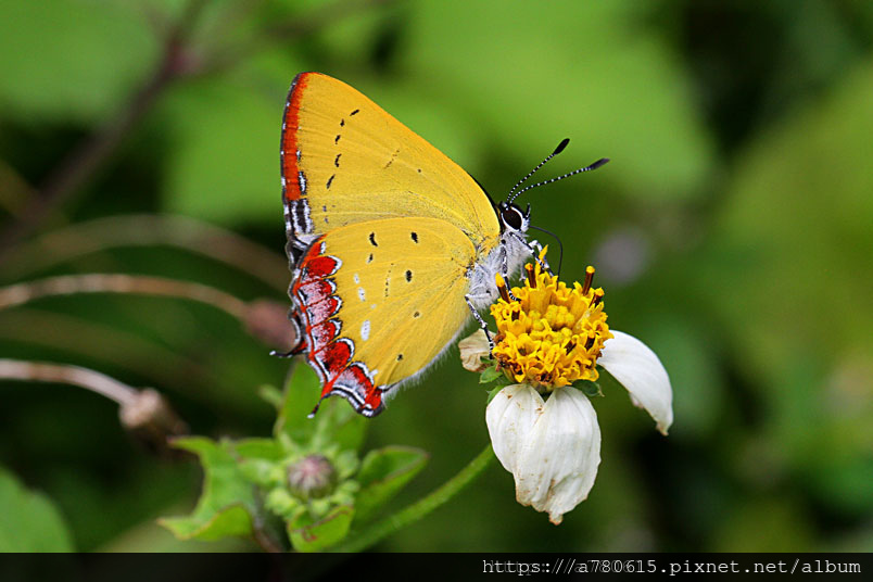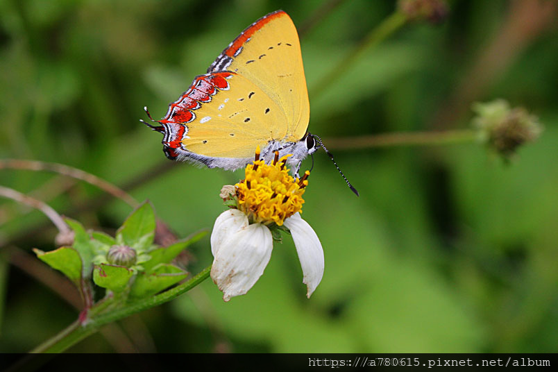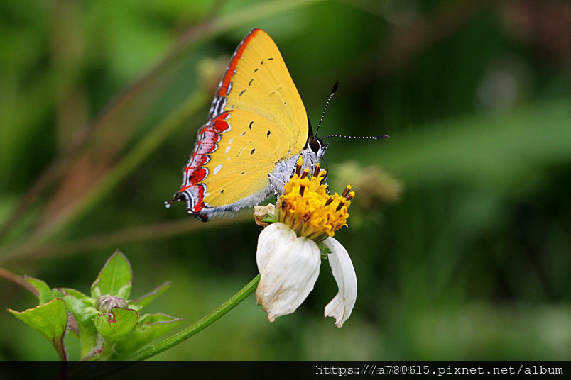 平地與低海拔山區常能見到紅邊黃小灰蝶穿梭於花間吸蜜。