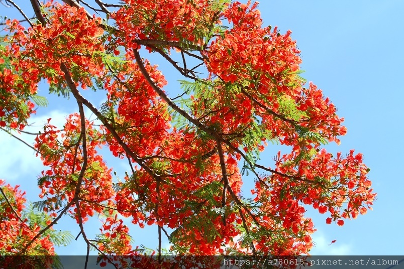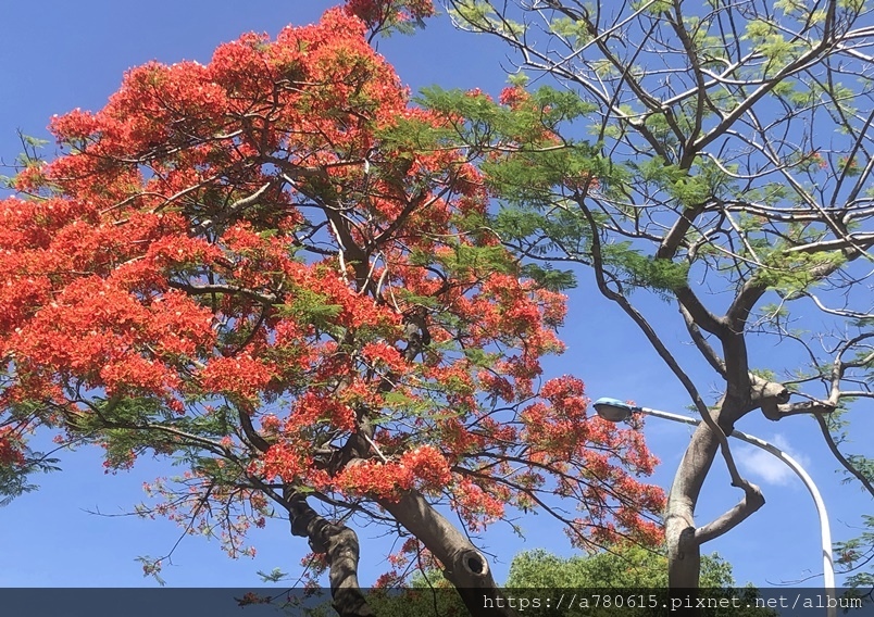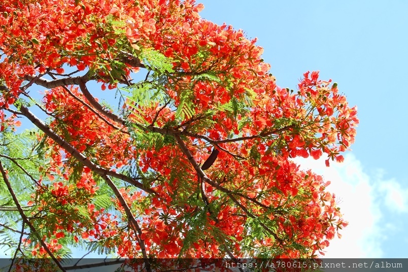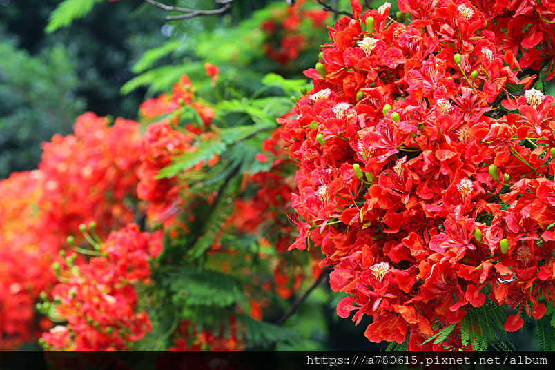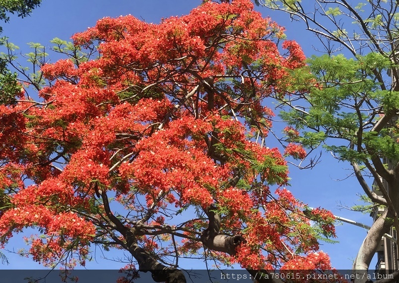 鳳凰花每年在5~7月開花,因鮮紅或橙色的花朵配合鮮