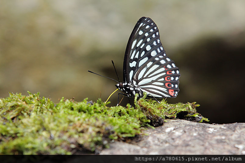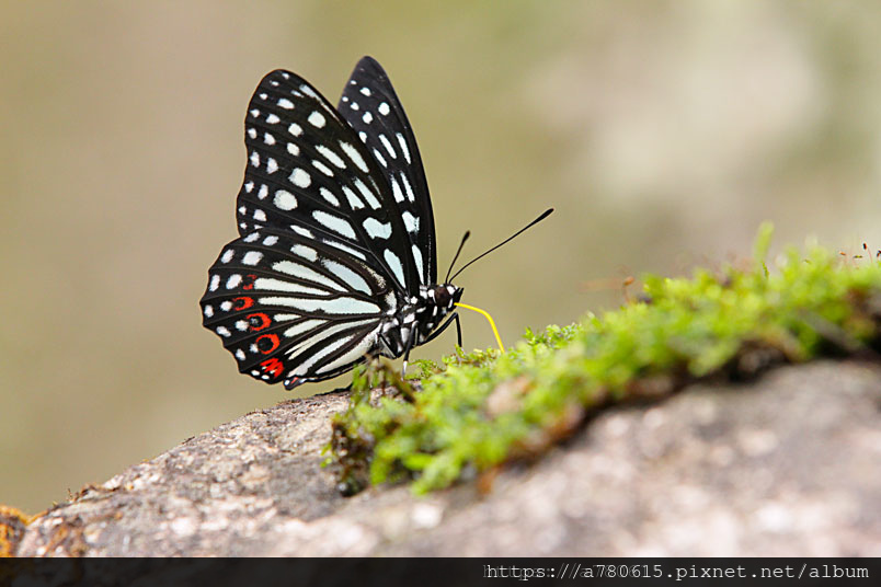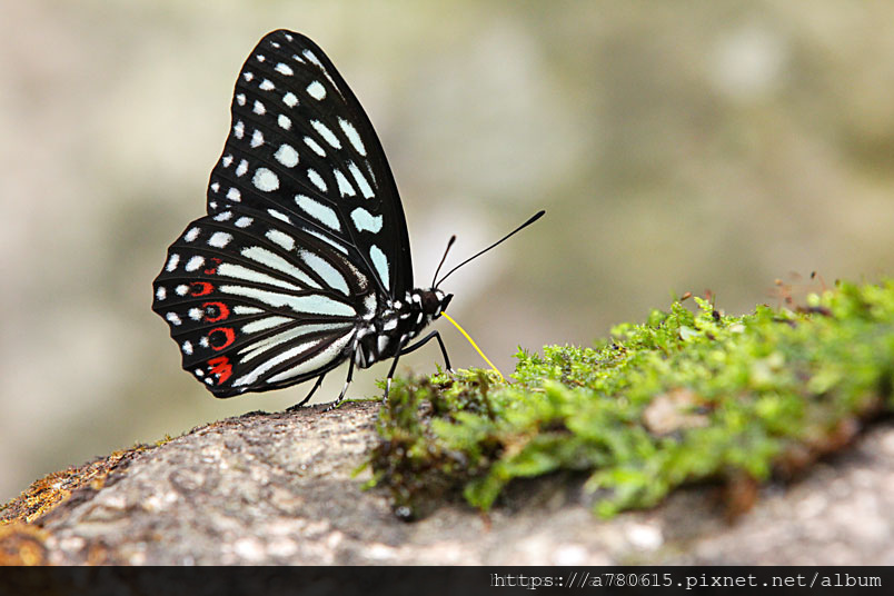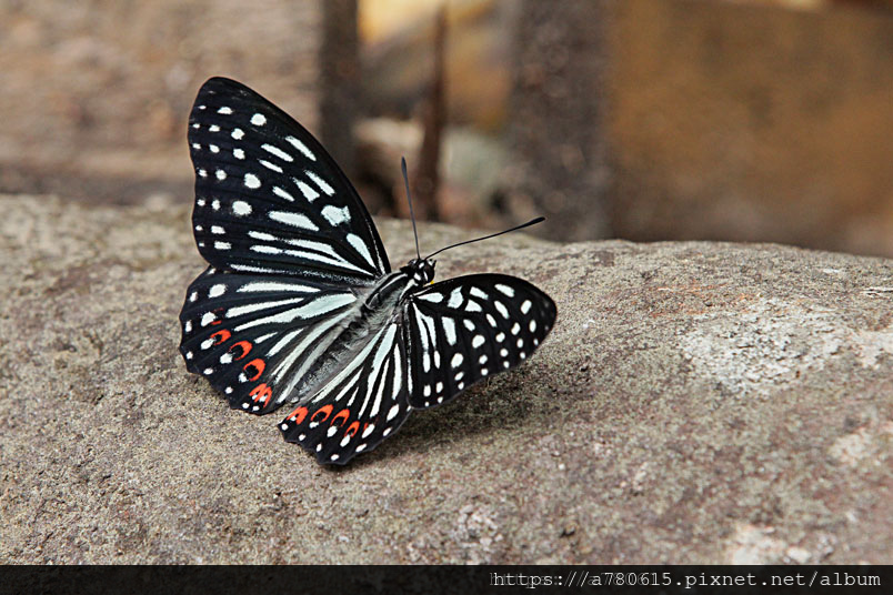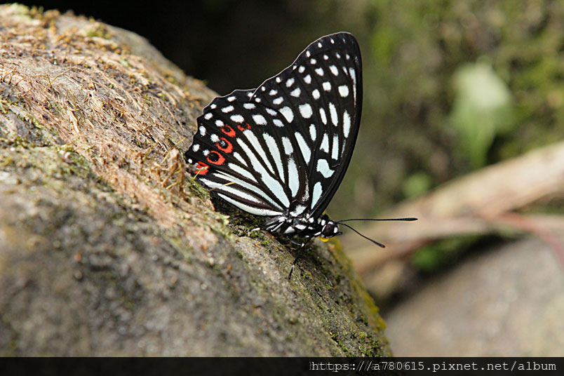 紅星斑蛺蝶,又稱紅斑脈蛺蝶,展翅約6至7公分。