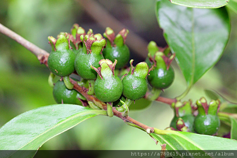 榕樹的葉互生,草莓番石榴葉對生。另外榕樹枝條上