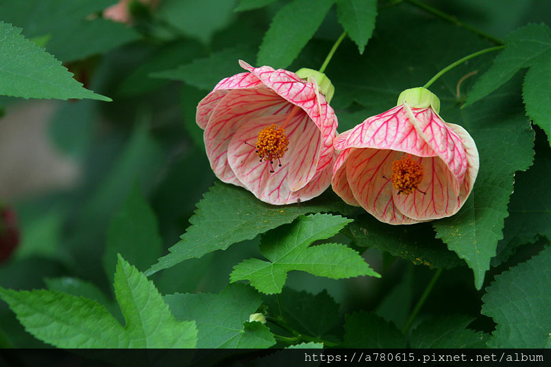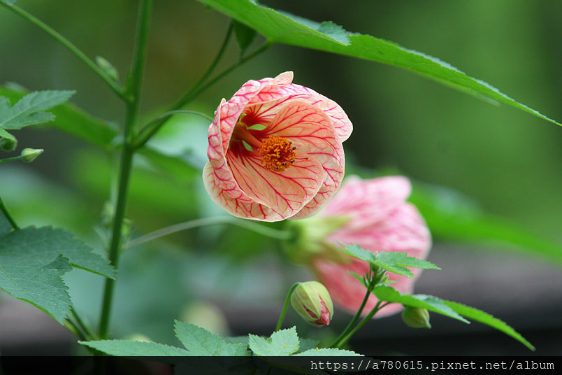 紋瓣懸鈴花,錦葵科苘麻屬常綠灌木,高達1米。