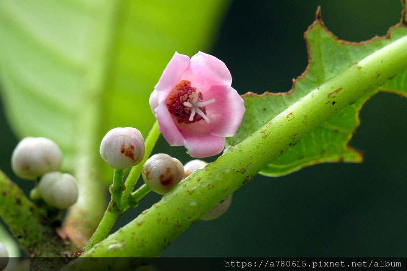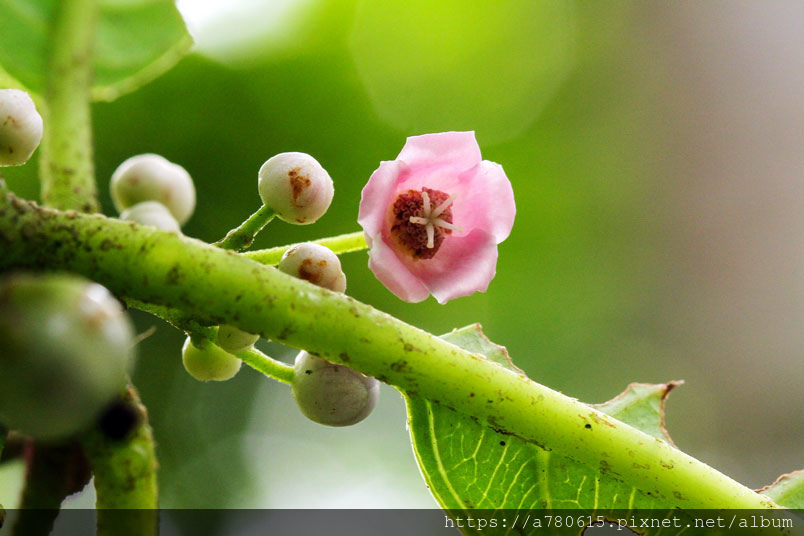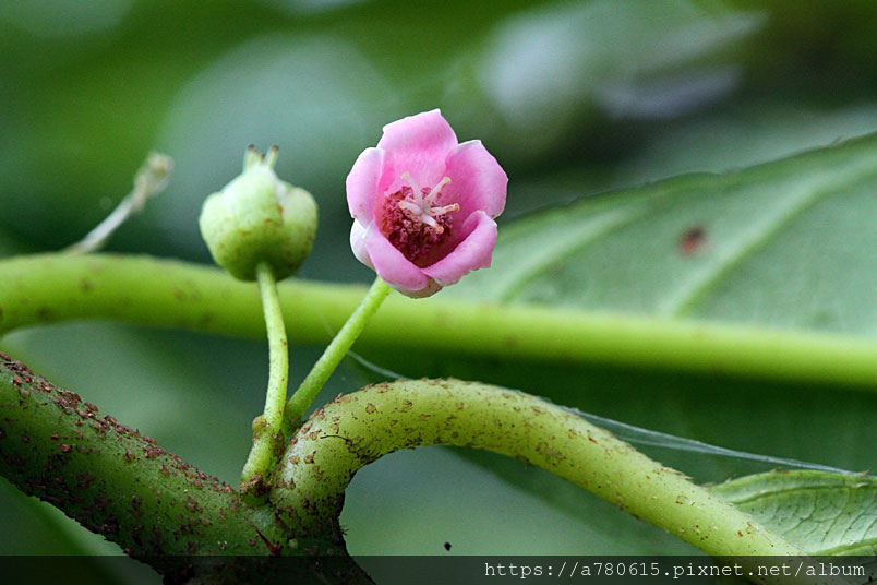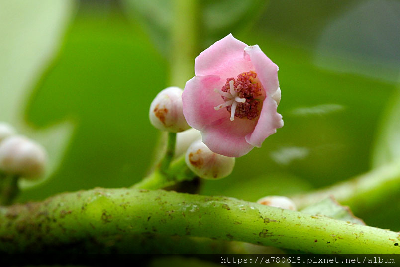 水冬瓜粉紅色的花小巧可愛,花徑約1公分,五枚小小