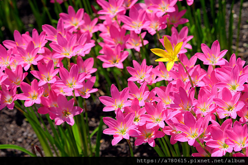 每每在夏天突然成片開起,每個鱗莖都開花,叢生的花團,在艷陽下大放異彩,千嬌百媚,人見人愛。