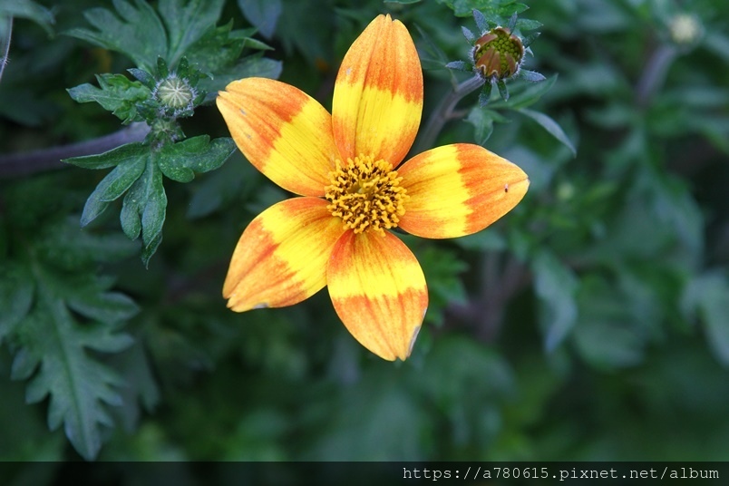 漆紅蜂舞鬼針草/舞蜂草,為蜜蜂菊的一種。由阿魏葉