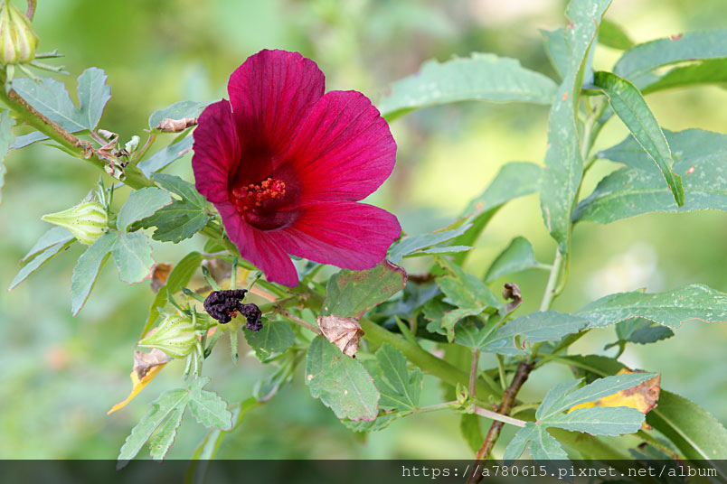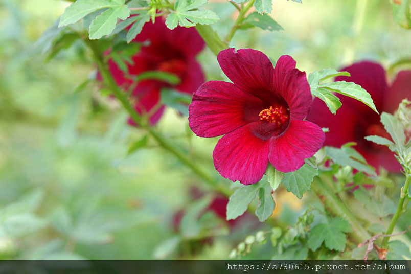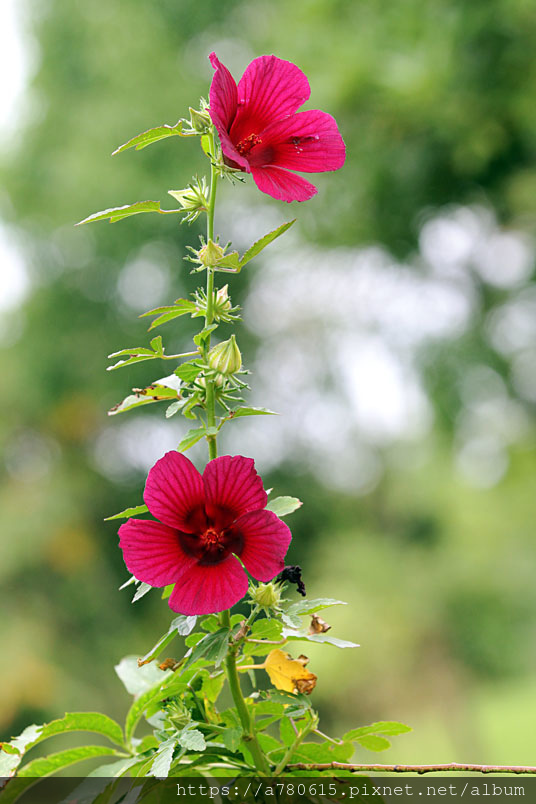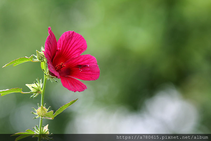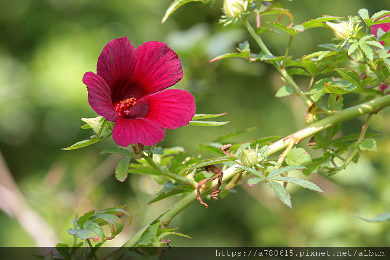 紫葵,錦葵科,常綠灌木。別名:十月玫瑰、紅寶石木槿。