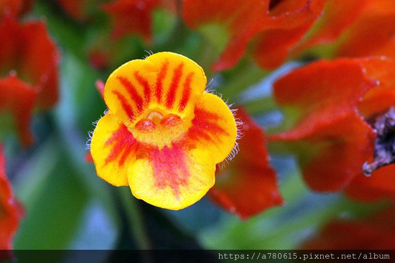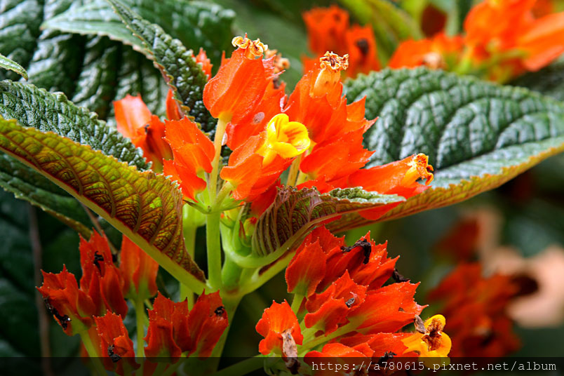 金紅花,苦苣苔科多年生宿根性球根花卉,全株有毛。