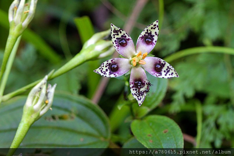 色深濃的凹處,分泌點點花蜜。螞蟻、蜜蜂、胡蜂、熊