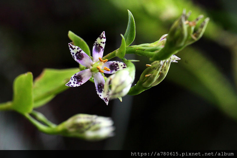 一睹綴著紫色雀斑與水晶般蜜露的華美星狀小花。