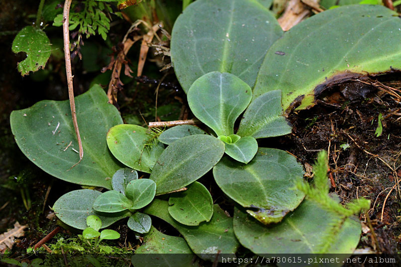 基生葉在開花時宿存,橢圓至倒卵形,大小變異大,可
